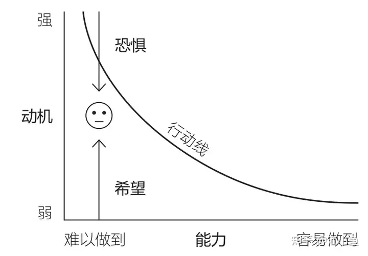 福格行为模型,是说一个人做一件事,必须有足够强烈的动机、足以胜任的能力,有效的触发锚点,三者同时满足,行为才会发生。
